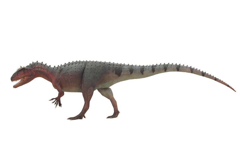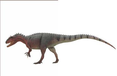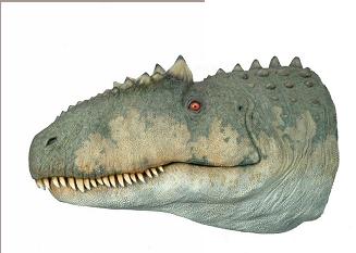 Allosaurus was up to 38 feet long (12 m) and 16.5 feet tall (5 m). It weighed about 1400 kg. It had a 3 feet long (90 cm) skull with two short brow-horns and bony knobs and ridges above its eyes and on the top of the head. It had large, powerful jaws with long, sharp, serrated teeth 2 to 4 inches (5 to 10 cm) long.