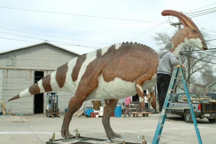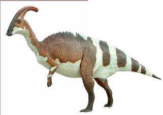 Parasaurolophus was a bus-sized dinosaur that had a long, hollow, bony head crest that may have used to make sounds. This plant-eating dinosaur lived during the late Cretaceous about 76-65 million years ago.