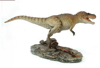 Allosaurus was up to 38 feet long (12 m) and 16.5 feet tall (5 m). It weighed about 1400 kg. It had a 3 feet long (90 cm) skull with two short brow-horns and bony knobs and ridges above its eyes and on the top of the head. It had large, powerful jaws with long, sharp, serrated teeth 2 to 4 inches (5 to 10 cm) long.
