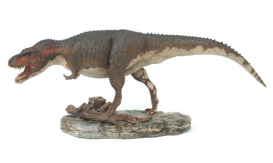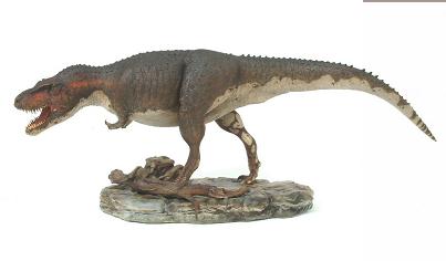 Tyrannosaurus rex was a fierce predator that walked on two powerful legs. This meat-eater had a huge head with large, pointed, replaceable teeth and well-developed jaw muscles. It had tiny arms, each with two fingers. Each bird-like foot had three large toes, all equipped with claws (plus a little dewclaw on a tiny, vestigial fourth toe). T. rex had a slim, stiff, pointed tail that provided balance and allowed quick turns while running. T. rex's neck was short and muscular. Its body was solidly built but its bones were hollow.