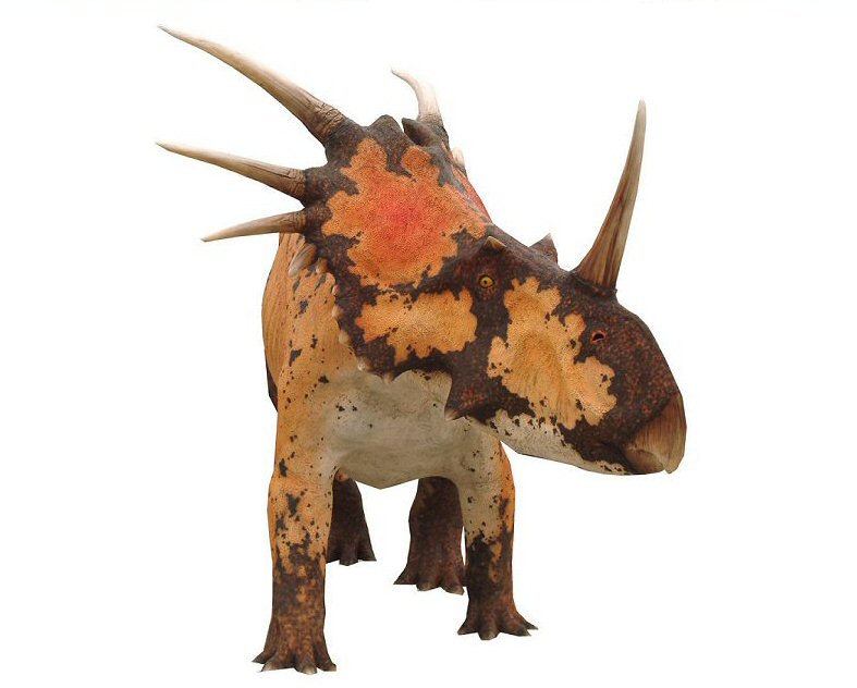 Styracosaurus lived in the late Cretaceous period, about 77-70 million years ago. It was among the last of the dinosaur species to evolve before the Cretaceous-Tertiary extinction 65 million years ago. Among the contemporaries of Styracosaurus were Tyrannosaurus rex, Ankylosaurus (an armored herbivore), Corythosaurus (a crested dinosaur), and Dryptosaurus (a meat-eating dinosaur).