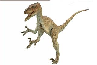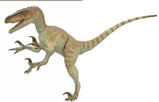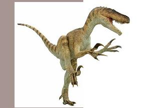 Utahraptor is known from a well-preserved skeleton found in 1991 in Utah, USA and fragmentary remains from South America. It was the largest of a group of lightly-built carnivores, called the dromaeosaurs ('swift lizards'). Utahraptor had large eyes, long grasping hands and powerfully clawed feet. Clearly it was carnivorous, but was distinctive in relying on a wickedly hooked, slashing claw on each foot rather than the jaws and teeth of a typical predator. Its toe joints were specially enlarged so that its massive claw could be raised upward and backward to avoid damage while running. But when used in attack, its claw flexed forward as the animal kicked out. To help it balance on one foot while kicking, its tail was made to act like an acrobat's balancing pole, being stiffened by a sheath of fine bony rods. Swinging in a wide arc its huge 20 cm slashing claw would produce terrible wounds enabling a Utahraptor to cripple and kill animals much larger than itself. The discovery of a number of skeletons of the closely related dromaeosaur, Deinonychus, around the skeleton of a large plant eater suggests that dromaeosaurs may well have hunted in packs. The dromaeosaur group also included Velociraptor, made famous by Steven Spielberg in "Jurassic Park". For the film, Velociraptor was made twice its actual size, which seemed to be very speculative at the time. However, within a year of the release of the film, a giant dromaeosaur had been found, namely Utahraptor. So life can be stranger than fiction!.